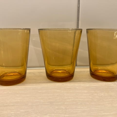 Glassene er brukte og har noen lette riper etter vanlig bruk, men ingen skår eller sprekker.