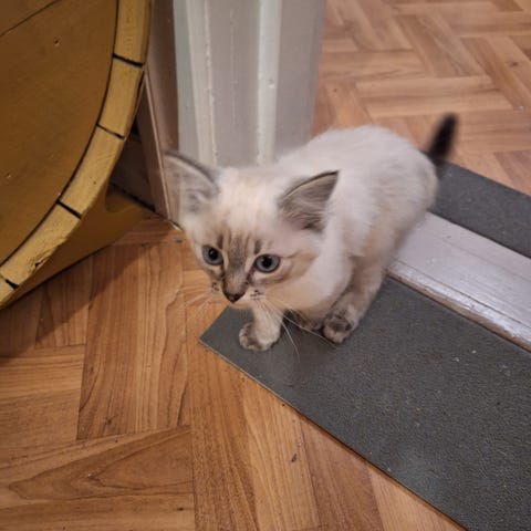 Vakker og sjarmerende kattunge som er nysgjerrig, veldig blid, leken og smart. Han er svært vennlig og trygg sammen med små barn.