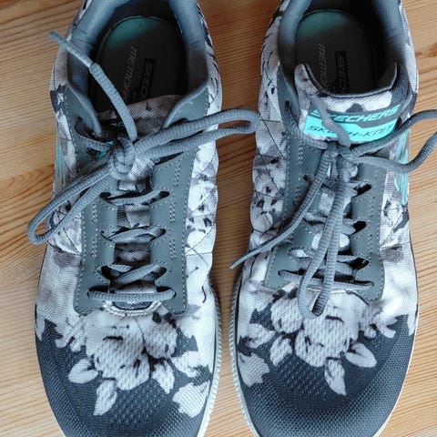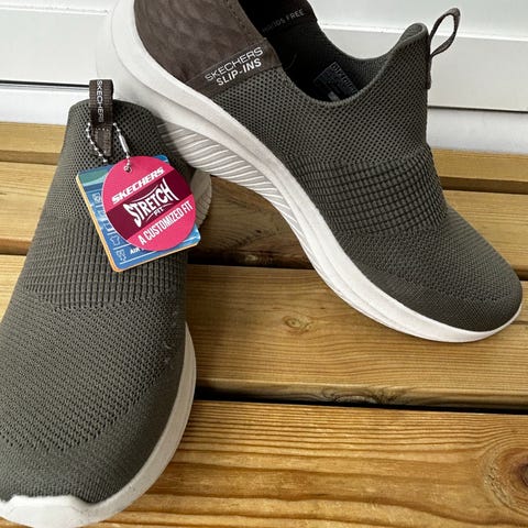 Skechers Sneakers joggesko i størrelse 41. Skoene og sandalene er nye og ubrukte og i fargen beige og laget med materialer som gir komfort og støtte ved bruk. Så de er lette å bare trakke oppi. Selges samlet meget rimelig