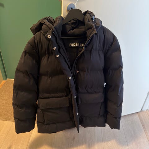 Cedrico Annet yttertøy dunjakke i størrelse S for dame. Jakken er svart og laget med dun som materiale. Den har hette og glidelåslukking, egnet for utendørs bruk.