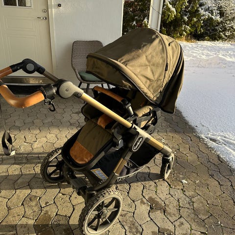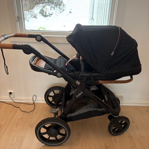 Veldig pen vogn med brune detaljer og sorte hjul. Den fineste farge kombinasjonen etter min mening.