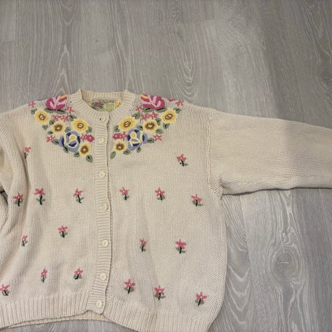 Grå jakke med grønn kant - broderi av dyr, natur, m.m.
