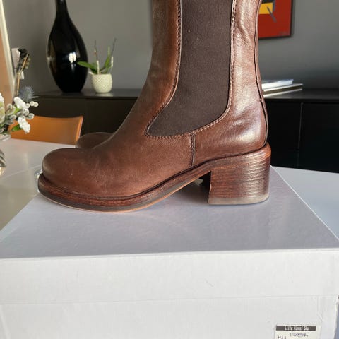 Tamaris støvler i størrelse 39 med brun farge. Støvlene har glidelås på siden og en lav, stabil hæl. Materialet gir en glatt overflate og støvlene er designet for komfort med Touch It-teknologi.