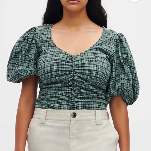 Kjempefin bluse fra Ganni. Ekslusivt stoff, litt skinnende. Fremstår som ny ✨