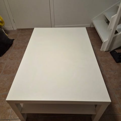 IKEA Alfred Homann sofabord i hvit farge. Bordet har et enkelt design med en rektangulær bordplate og en underhylle for ekstra oppbevaring.