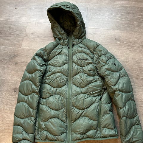 God og varm jakke. Dunet har dessverre forflyttet seg i jakka slik at den klumper seg. Nyvasket. Kan vaskes på nytt og strekke ut dunet. Skal ikke tromles.