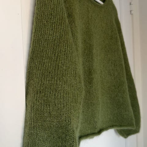 H&M genser i mohairull, brun farge, størrelse M for dame. Genseren er laget av en blanding av mohair og ull, som gir et mykt og varmt plagg egnet for kaldere vær. Genseren kostet 1499,-