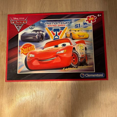 Disney Pixar Cars Lotto brettspill med tema fra filmen Cars. Inneholder spillkort og spillebrett med bilder av karakterer fra filmen. Egnet for barn og familiebruk.