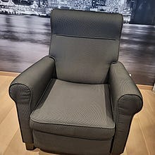 Stolen er i god stand, men trenger en rens da det er noen flekker her og der. Reclinerfunksjon fungerer som den skal. Mulig trekket på denne er annerledes er det som er på nettsidene til Ikea, så mulig dette er en eldre modell.