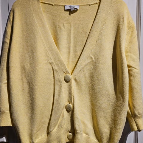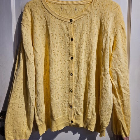Gul cardigan, med v- form