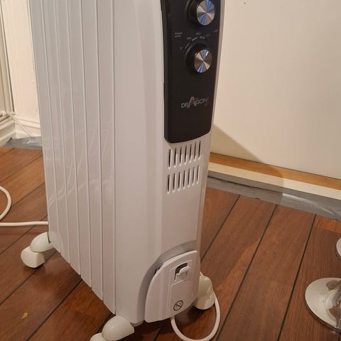 1500 watt, Tre strøminnstillinger DeLonghi varmeovn selges.