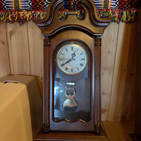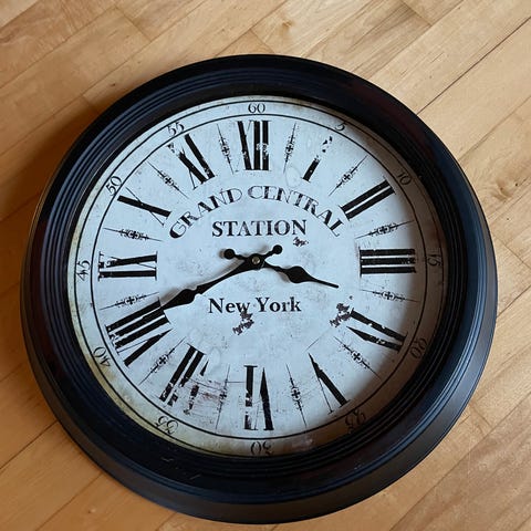 Veggklokke ca 37 cm med oppheng. Lite merke nede på klokken som har vært der siden den var ny, se bilde.