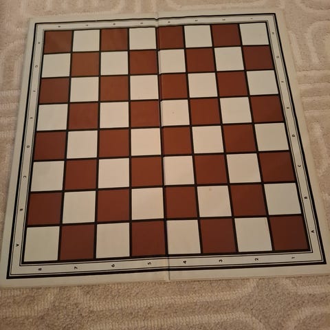 Sjakkbrett i tre med sjakkbrikker i svart og naturfarget tre. Brettet har rutemønster og er designet for å spille sjakk.kan sende,kjøper bet porto,se mine anonser