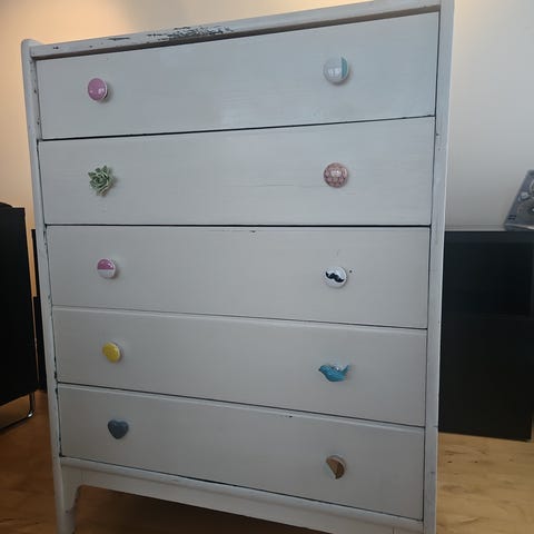 Selger denne pga plassmangel. Den ene planken over den ene skuffen er knekt. Tror det skal gå an å kjøpe enkeltdeler på IKEA.