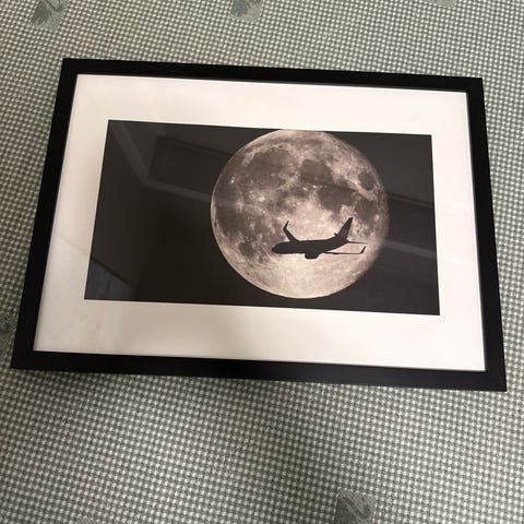 Passer til dekorasjon i hjem eller kontor. 70x100cm. Bitte småskader som kan korrigeres med svart maling. Tørr ikke sende. Kan hentes i Oslo. Kjøpt ny på Skeidar for 1700,- for noen år siden. Meget god kvalitet på trykket og sort treramme.