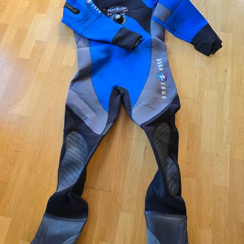 Aqualung Fronco tørrdrakt i størrelse ML, farge blå og svart, med integrerte støvler.