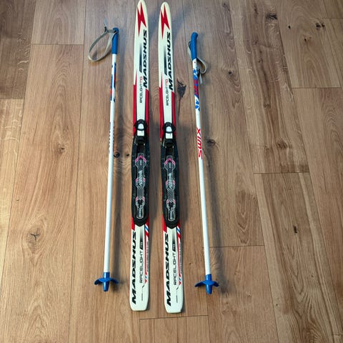 Madshus Racelight langrennsski med lengde på 110 cm. Smørefrie ski med Rottefella bindinger.