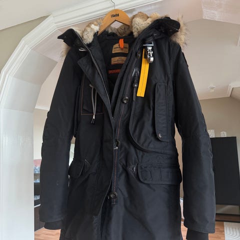 Selger denne Parajumperen fordi den ikke blir brukt. Har ingen bruksmerker på selve jakken, men mangler kun merket på armen (kan kjøpes) og «hanken» på den øverste glidlåsen (se bilde 4 og 5. Den går til hoften og har pels inni hetten, noe Parajumpers har sluttet med. Det er størrelse XS, men passer også en S