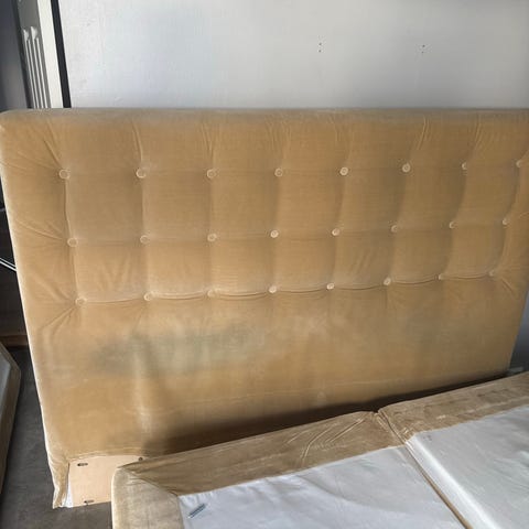 Sengen står på en tre ramme som følger med, ca 5cm ekstra høyde.