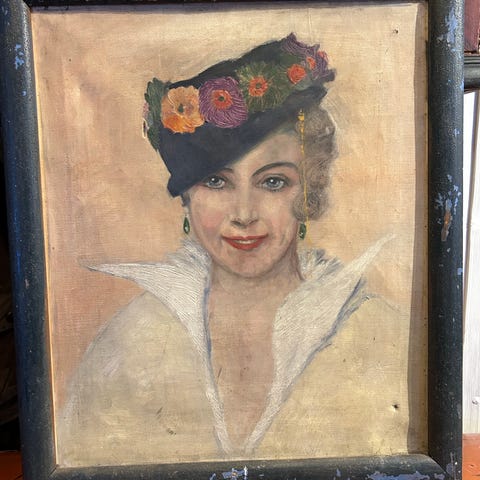 Vintage portrettmaleri fra 1931 – olje på lerret, signert SW