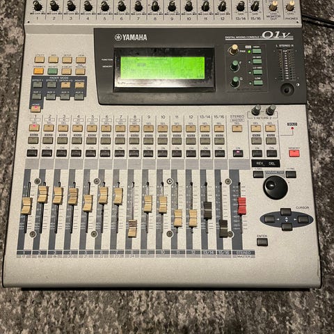 Yamaha 01V digital mikser med 16 kanaler, og LCD-skjerm. egnet for øvingslokale og ekle live lydarbeid.