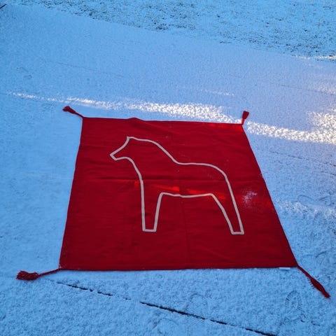Ryen er tett og pent knyttet i tykt ullgarn. Pen fargebruk.