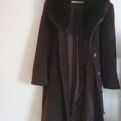 Stilig ullkåpe i rutemønster. Kåpen er i str. 42 og er pent brukt