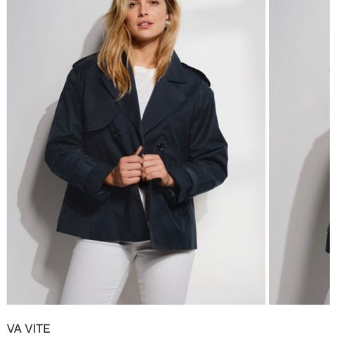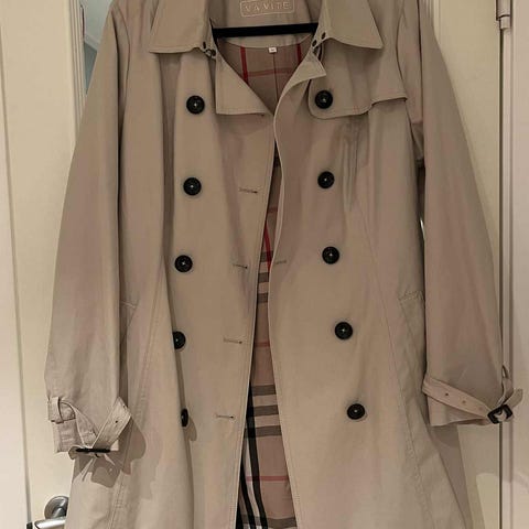 Va Vite dame Trench Coat, ikke brukt , størrelse XL farge beige 100% polyester. Ytterstoffet består av 50% bomull og 50% polyester. Jakken har belte og knapper foran