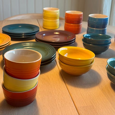Dyp pasta- salat tallerken le creuset i grønnfarge