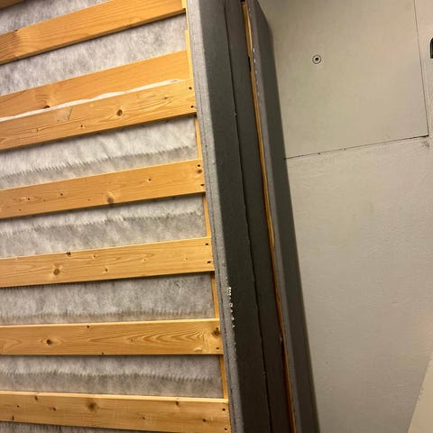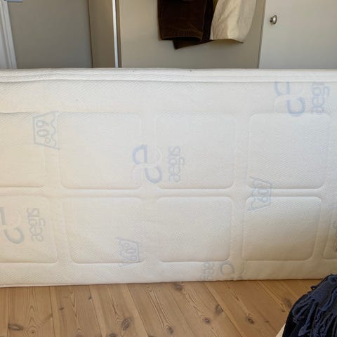Enkel rammemadrass gies bort mot henting. 75x200 cm. Bena er 14,5 cm, totalt 31,5 cm høy.