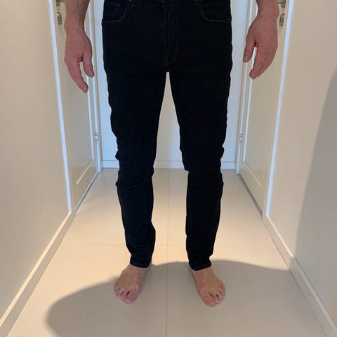Matinique bukser i størrelse L, blå farge, laget av bomull. Designet for menn. Modellen på bildet er 189cm/88 kilo. Bruker normalt 33" i livet på bukser. Denne sitter på og har stretch i livet og jeg synes den er litt løs