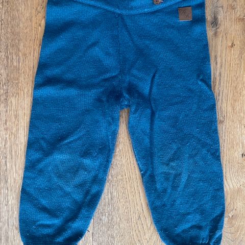 Blå ullbukse fra Janus selges. Kan brettes opp for lengre brukstid. Har noen små hull på høyre fot.