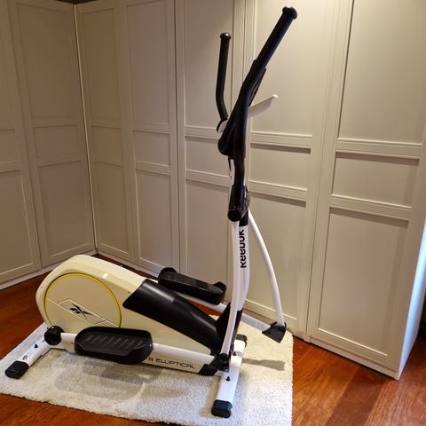 U.S. Style Trimsykkel med digital skjerm som viser tid, distanse, kaloriforbruk, puls og treningsnivå. Utstyrt med justerbart sete og håndtak. Passer til innendørs trening.