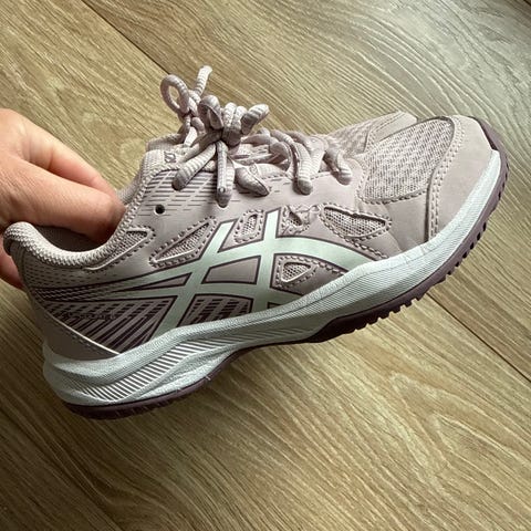 Asics joggesko for barn i størrelse 34,5 selges. Brukt, men mye bruk igjen. Brukt som håndballsko og gymsko av ett barn.