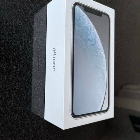 Apple iPhone 11 mobiltelefon med 64 GB lagringskapasitet i svart farge. Enheten har en 6,1 tommers Liquid Retina HD-skjerm og dobbel 12 MP kameraoppsett. Telefonen har noen få synlige riper skjerm og bakside, som vist på bildene.