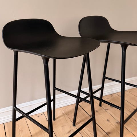 2 stk gråe Normann Copenhagen barstoler, pent brukt.