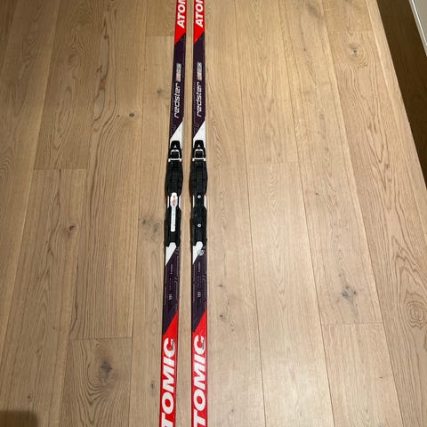 Atomic Skintec langrennsski med lengde på 158 cm, står med lagringsvoks som kan skrapes av. Skiene har Skintec glidende fell som gir godt feste og god glid. Fellene har vært renset og impregnert jevnlig. Ingen stygge hakk. Passer NNN sko.