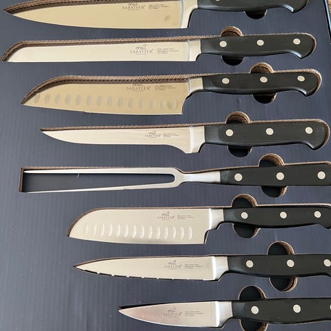 12 gode biffkniver selges da vi har fått nytt bestikk til jul :) Knivene skjærer godt, har rustfritt stål og sort skaft, kan fint vaskes i oppvaskmaskin.
