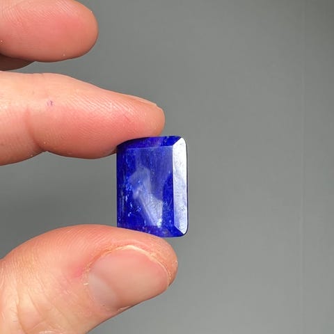 Lapis Lazuli oval polert stein i blå farge. Steinen er liten og oval, egnet for smykke- eller samlerformål.