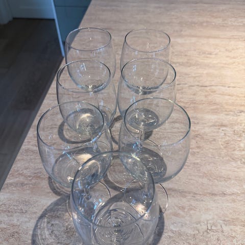 11 stk rødvinsglass selges da de ikke blir brukt. Usikker på hvor de er kjøpt. Må hentes på Stokkanhaugen.