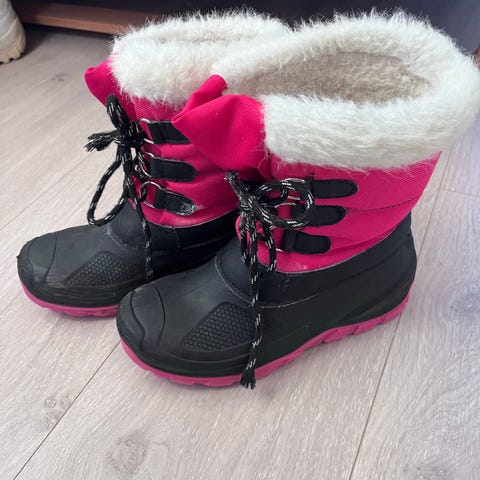 Kamik barnestøvler i størrelse 33 for jenter. Støvlene har Gore-Tex membran som gir vanntetthet og pusteevne. Yttersålen har godt mønster for grep. Fargen på støvlene er mørk rosa/burgunder med svart gummi nederst. Innvendig fôr er mulig å ta ut.