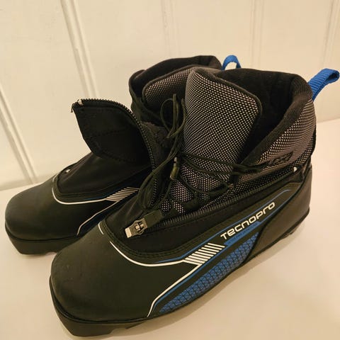 Tecnopro skisko i størrelse 38, med svart og gul farge.