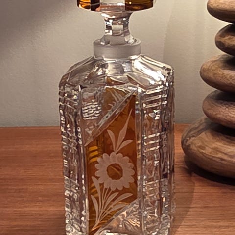 Tung. Klar krystall med brune detaljer. H: 24 cm.