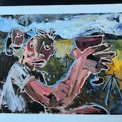 OLOF BEHRENS (f. 1978) er en svensk billedkunstner og illustratør med en særegen strek og et unikt visuelt uttrykk. Behrens maler ut ifra daglige sanseinntrykk og flere av hans verker er av ekspressiv art
