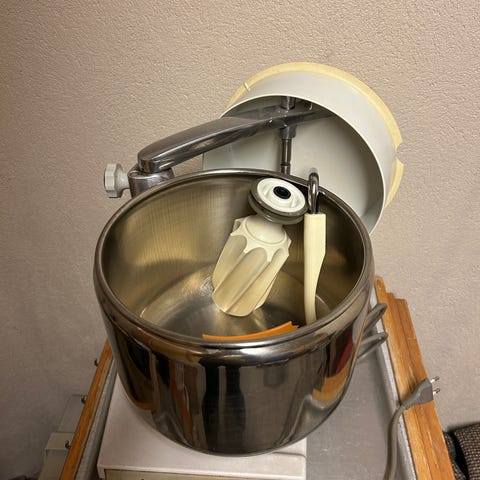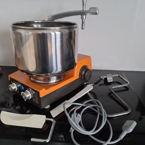 Stålbolle med lokk ( lokket har ein smelteskade, ikkje hull) selgast. Høyrer til Electrolux Assistent Variomat, var ny i 1979.