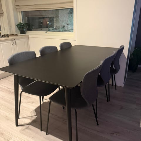 Kjøpt på bohus. Blitt lite brukt. Mørk brun med hvit passende trekk til alle 6. Trekkene tas enkelt av for vask. Selges samlet 1200 for alle.