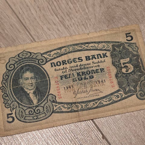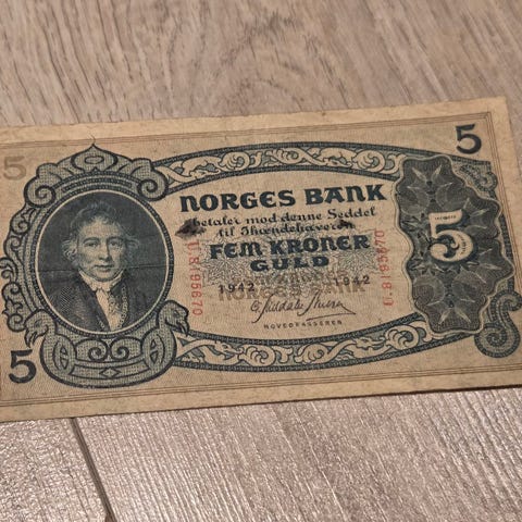 Norges Bank 5 Kroner Sedler 1940