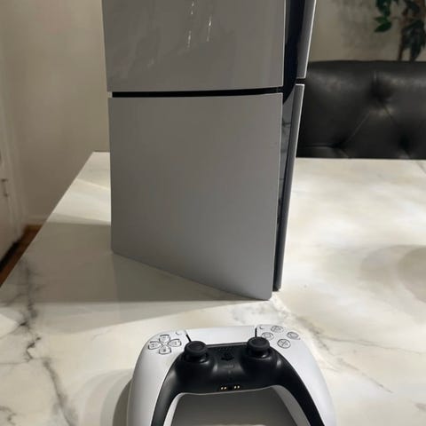 Selger en meget pent brukt ps5 slim digital edition. Denne er kjøpt juli 2025 og har stått rolig inni en tv benk som vist på bildet.