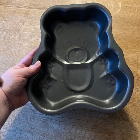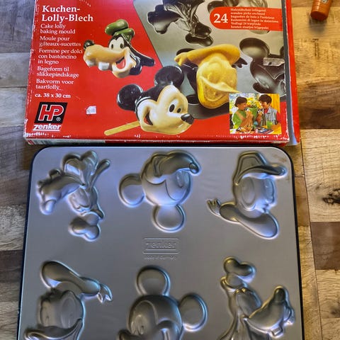 Kakeform som brukes til å steke en kake som en dukke kan stå i. Følger med to dukker, ei blond og ei brunette. Brukt et par ganger.