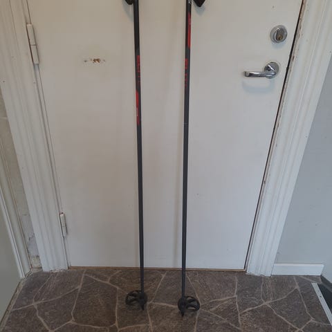 Leki trekkingstaver med en lengde på 123 cm. Stavene er svarte og egnet for bruk ved fotturer og turgåing. Materiale og kjønn er ikke oppgitt.